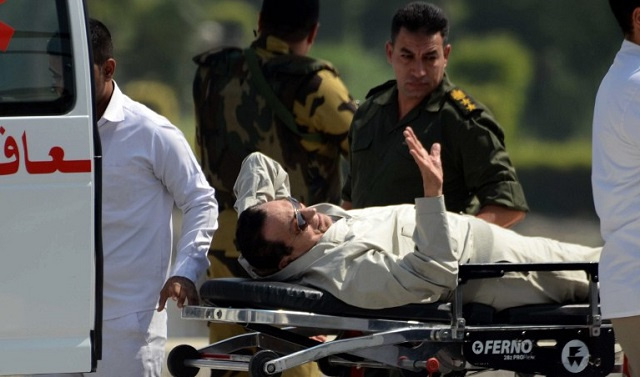 إسعاف مبارك عقب تعرضه لوعكة صحية إثناء محاكمته