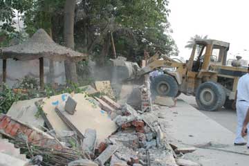 وأكدت أن ازالة التعديات خلال الحملة تمت بشكل نهائى ، و تمثلت فى سور مبانى بطول 300م ، وعدة مبانى من دور واحد على مسطح 250 م2 ، استغلها المخالف فى إقامة كافيهات وقاعتين للأفراح ، وتم إخلاء قطعة الارض واسترادها كأملاك دولة يجب الحفاظ عليها ، وجارى دراسة تخصيصها لاستغلالها الاستغلال الأمثل للمنفعة العامة .