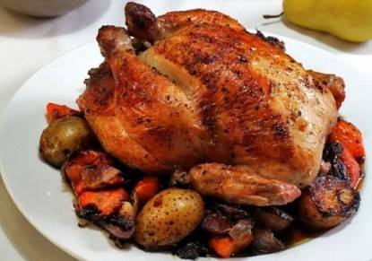 قدميه مع الدجاج المحشي.