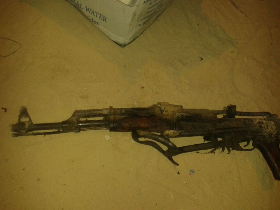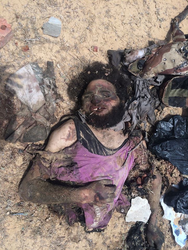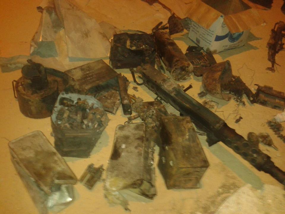 المجموعة الرابعة لجثث القتلى من العناصر الإرهابية الخسيسة التى تم القضاء عليها يوم 1 / 7 / 2015 وجانب من الأسلحة والذخائر التى كانت بحوزتهم فى الهجوم الإرهابى
