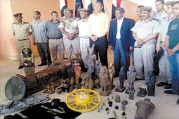 فى اطارخطة الادارة العامة لشرطة السياحة والاثار وبناء على توجيهات السيد اللواء مساعد الوزيرمديرالادارة العامة لشرطة السياحة والاثار وتحت اشراف السيد اللواء مدير ادارة البحث الجنائى بالادارة وذلك لتعقب مهربى وتجارالاثار وردت معلومات اكدتها التحريات تفيد بقيام كل من 1- على شحاتة محمد شحاتة 45 سنة صاحب السيارة ومقيم مركز اهناسيا بنى سويف 2- محمودشحاتة محمد شحاتة سن 35 ستة مقيم مركز اهناسيا بنى سويف 3- احمد محمد محمد احمد 35سنة عامل رخام ومقيم بمشاة ناصر بالقاهرة بحيازة بعض القطع الاثرية وعرضها على تجار الاثار ومهربى الاثار راغبى الثراء السريع بدائرة مركز شرطة الفيوم مستخدمين السيارة رقم 32566 نقل بنى سويف والمملوكة للاول فى نقل القطع الاثرية وتم ضبطهم واتضح وجود اخرين