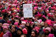 وارتدت كثير من المحتجات قبعات باللون الوردي وحملن لافتات كتبن عليها عبارات تنتقد نظرة ترامب للمرأة في إشارة إلى عبارات جنسية تلفظ بها ترامب في شريط مسجل يعود لعام 2005 مما أثار موجة واسعة من الغضب.