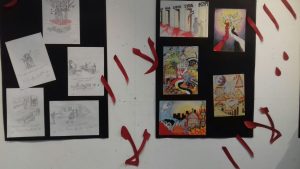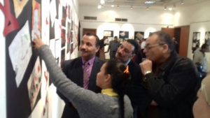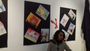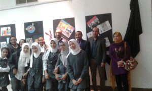 حيث عرض بالمعرض مجموعة من رسومات للطلاب الموهوبين بمدارس سوهاج المختلفة عبر من خلالها الطلاب عن شجب ونبذ كل أنواع الإرهاب بمختلف أشكاله وألوانه .