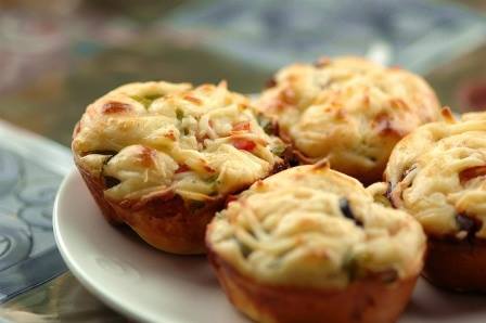 توضع في صينيه كاب كيك و يوضع علي الوجه صلصه طماطم ثم فلفل ثم زيتون و جبنه موتزاريلا و جبنه كرافت