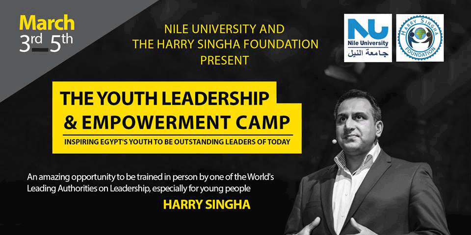 تستضيف جامعة النيل الأهلية في لقاء مميز واحد من المحاضرين العالميين في مجال القيادة وهو المحاضر “Harry Singha”، اللقاء الذي يعقد في جامعة النيل على صورة معكسر تدريب لمدة 3 أيام فى الفترة من 3 إلى 5 مارس الجاري لتنمية قدرات الشباب يدور حول القيادة وتمكين الشباب لمساعدتهم أن يكون لهم دور فعال وريادي في المجتمع .