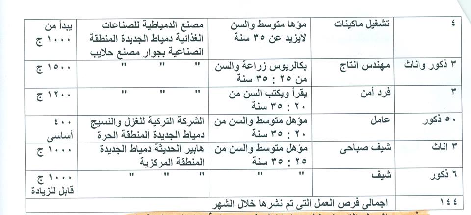 صرح رزق شويل مدير مديرية القوى العاملة والهجرة بدمياط أنه تم توفير 144 فرصة عمل للشباب خلال شهر يونيه بالقطاع الخاص والاستثماري بالمحافظة بمرتبات تصل إلى 1200 جنيه ، وأن هذه الفرص التي تم نشرها خلال الشهر مازالت شاغرة حتى الآن .