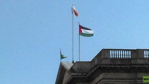 صوّت مجلسا بلدية دبلن ومدينة سلايغو، الاثنين 8 مايو، لصالح رفع العلم الفلسطيني على مبنى البلديتين بمناسبة ذكرى النكبة ومرور 50 عاما على الاحتلال الاسرائيلي.
