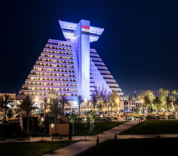 شيراتون الدوحة يكتسي بالعلم المصري تضامنا مع ضحايا هجوم المنيا