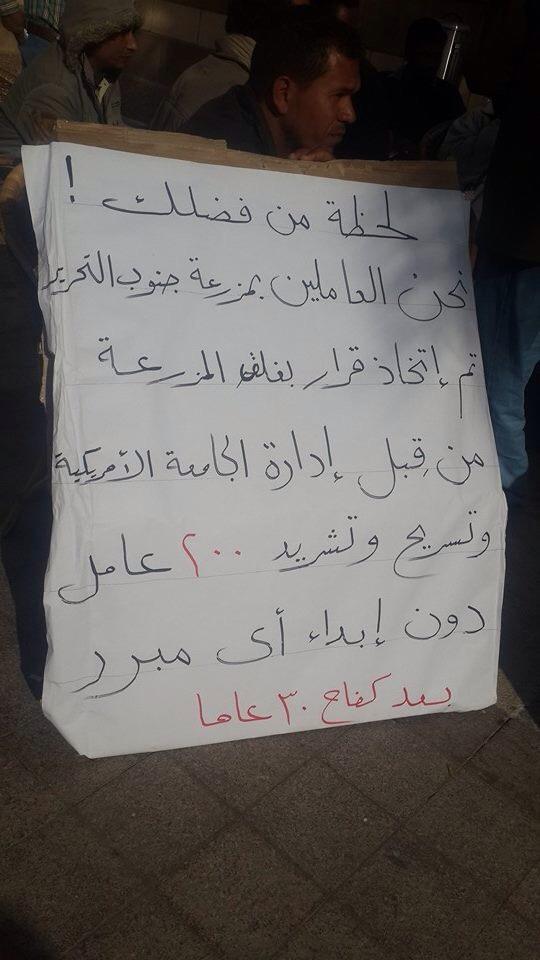 شارك العديد من الطلاب وأعضاء هيئة التدريس في الجامعة الأمريكية بالقاهرة عمال مزرعة جنوب التحرير اعتصامهم منذ يوم الأحد الماضي اعتراضاً على غلق المزرعة وتسريح 200 عامل منها بعد كفاح 30 عاماً فيها  , حيث أن الجامعة الأمريكية كانت قد قامت بتأجير المزرعة من الحكومة وقررت الآن غلقها بدون سابق إنذار للعمال العاملين فيها , فاعتصم العمال مستنكرين القرار الجائر ضدهم  داخل أسوار الجامعة وساندهم الطلبة والأساتذة دفاعاً عن حقوقهم وحقوق أسرهم المتضررة من هذا القرار.