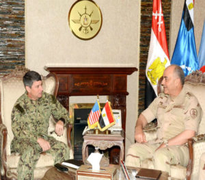 إلتقى الفريق محمود حجازى رئيس أركان حرب القوات المسلحة بالفريق بحرى كيفن دونجان قائد القوات البحرية للقيادة المركزية الأمريكية والوفد المرافق له الذى يزور مصر حالياً .