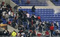 وأعلن ليون أن جماهيره احتمت بالملعب بعدما ألقى مشجعون من الجزء العلوي من الاستاد أغراضا وألعابا نارية باتجاههم.