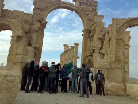 ونشر انصار الدولة الإسلامية صورا على مواقع التواصل الاجتماعي تظهر ما قالوا إنهم مسلحون في شوارع تدمر التي يوجد بها أحد أكبر مستودعات السلاح في سوريا وكذلك قواعد للجيش ومطار وسجن رئيسي.