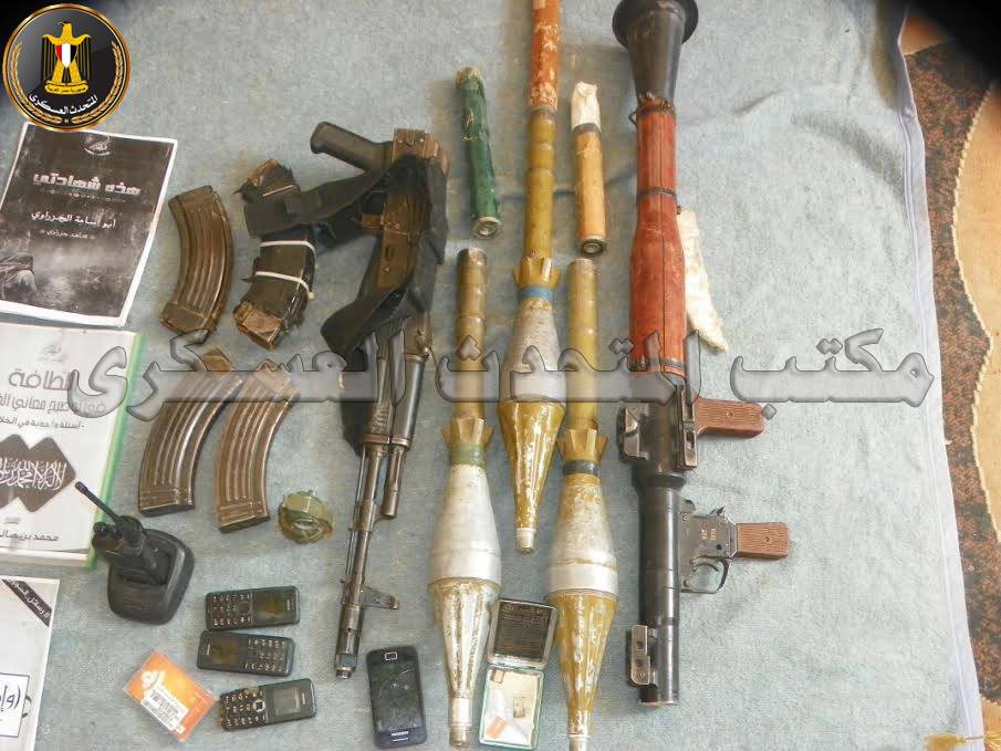 من ضبط الإرهابى كمال عيد سالم (من العناصر الإرهابية شديدة الخطورة) أثناء محاولته الهرب من أحد كمائن القوات المسلحة مستقلاً عربة ربع نقل ، حيث قامت قوات الكمين بالتعامل مع العربة وإيقافها وبتفتيشها عثر على الآتى: