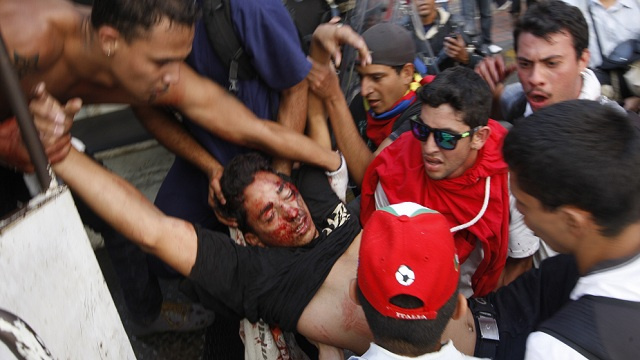 قتل شخصان على الأقل وأصيب 23 آخرون يوم الأربعاء 12 فبراير/شباط في العاصمة الفنزويلية كاراكاس خلال مظاهرات قام بها محتجون ضد السياسة الأمنية والإقتصادية للحكومة. وأكدت المدعية لويزا أورتيغا دياز للصحفيين وفاة شخصين من المحتجين بعد أن قامت وحدات التدخل باطلاق أعيرة نارية على المتظاهرين، كما جرح 23 وتم إلقاء القبض على أكثر من 25 آخرين. REUTERS مظاهرة ضد الحكومة في كاراكاس واندلعت مظاهرات سلمية في العاصمة كاراكاس ضد سياسة الرئيس نيكولا مادورو وذلك بعد حوالي سنة من توليه الحكم، وفي الأثناء عمد متظاهرون إلى إثارة الفوضى حيث تحولت المظاهرة السلمية إلى اشتباكات مع القوات الأمنية التي لم تتوان عن إطلاق النار في جميع الإتجاهات مما ادى إلى سقوط قتيلين على الأق