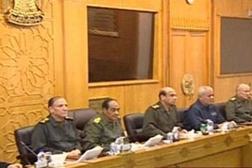 لقد جابهنا معا علي مدار عام كامل تحديات جسام غير مسبوقة , ووقف جيشكم ساندا قويا للشعب وعمدا وحيدا للوطن عند مفترق طرق حاسم بين الصمود والإنتكاس حين غاب الأمن وعز الأمان , وإنفتحت السجون وعربدت جماعات الإجرام حين تداعت مؤسسات الدولة الدستورية وتفككت أجهزة الأمن والنظام وفرض القانون .