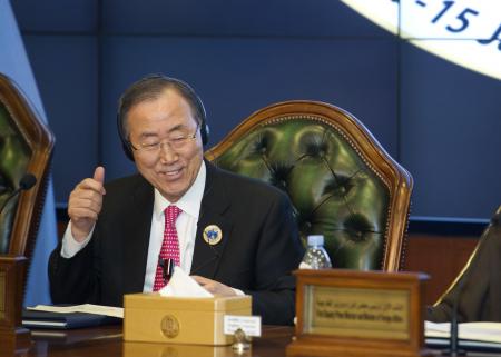وقال بان انه تحدث مطولا مع وزير الخارجية الايراني محمد جواد ظريف في الايام الاخيرة وانه يعتقد ان طهران تؤيد خطة جنيف 2012.
