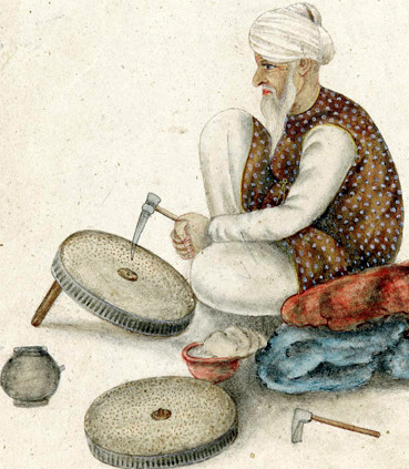 يبدأ يومه ومنذ شروق الشمس و حتى غروبها جالساً هكذا يطحن فى الحجر,,, تزروا أغلبه الرياح ولا يتبقى إلا ما أخفاه حجرى الرحى، وهو لا يكفى أن يملأ كفيه ، أو يملأ قرناً من قرون البقر،،،